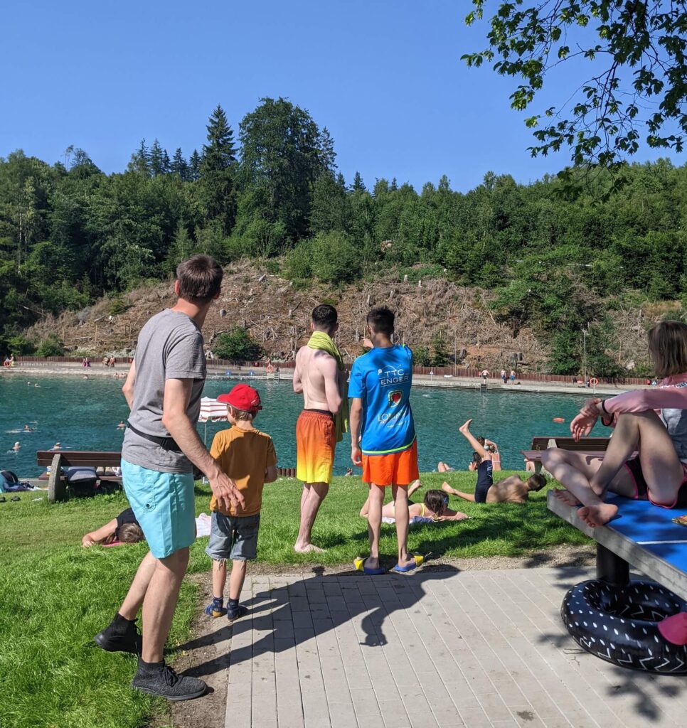 Unsere Ferienunterkunft ist die Umweltherberge Brilon. Die Herberge ist etwas abseits des Ortes gelegen und bietet viel Platz für erlebnisreiche Aktivitäten drinnen und draußen. So verfügt sie über einen Streetbasketballplatz, Tischtennisplatten, eine Boulderwand, eine Lagerfeuerstelle, Schaukeln, ein Klettergerüst und eine Indoor-Kletterhalle.